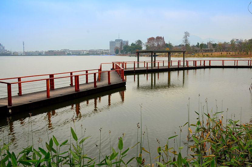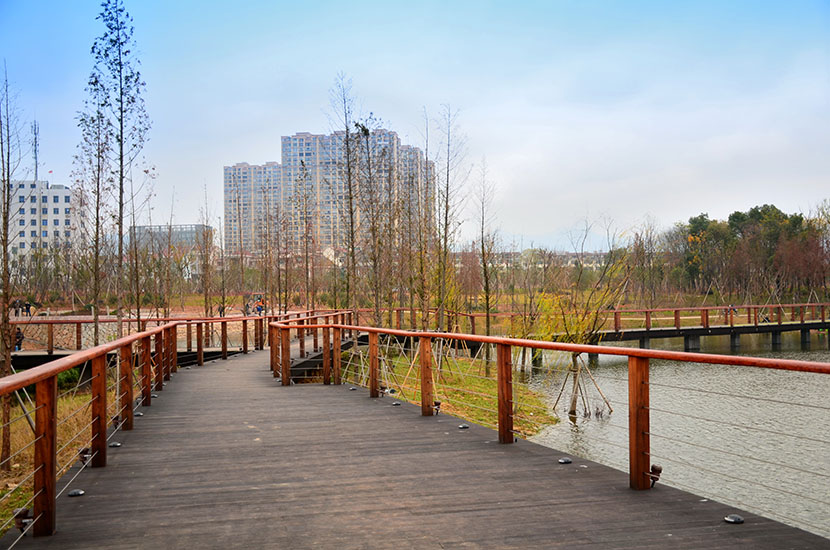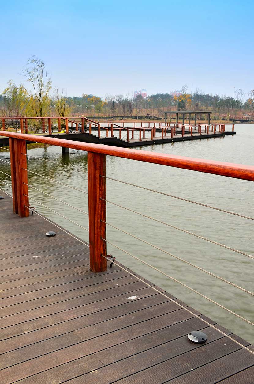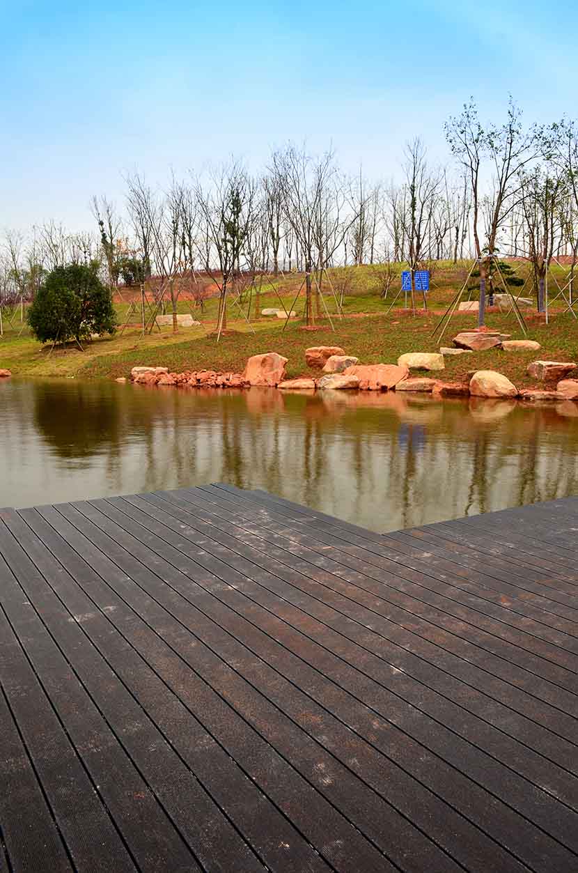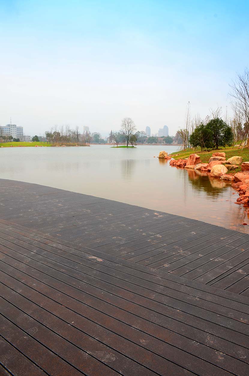 金獅湖公園位于浙江金華市北部的浦江縣,面積1265畝(水域面積368畝),總投資48億元。項目規(guī)劃為一環(huán)(金獅湖慢行游憩環(huán))、三片(人文體驗景觀風(fēng)貌片、動感都市景觀風(fēng)貌片、自然生態(tài)景觀風(fēng)貌片)及五區(qū)(工業(yè)遺存展示區(qū)、書香文創(chuàng)休閑區(qū)、康體活動休閑區(qū)、濕地田園游覽區(qū)、濱湖廣場活力區(qū))。公園環(huán)湖景觀步道全部使用桃花江戶外防腐竹地板,打造金華的“小西湖”。