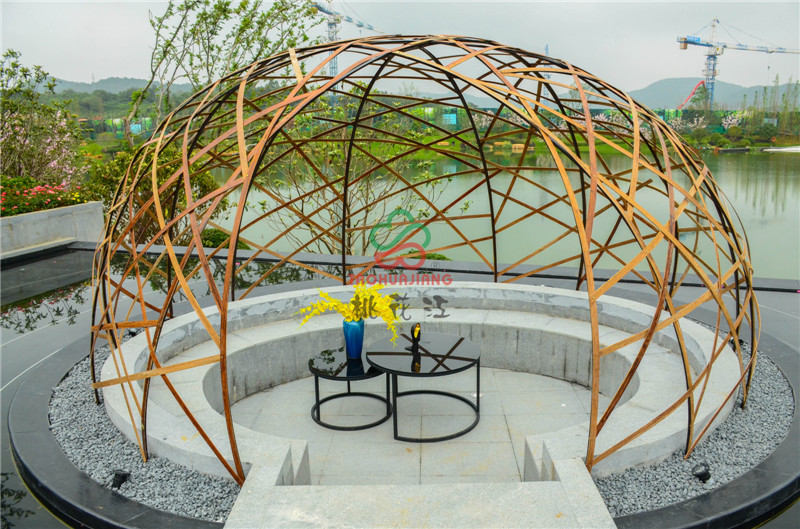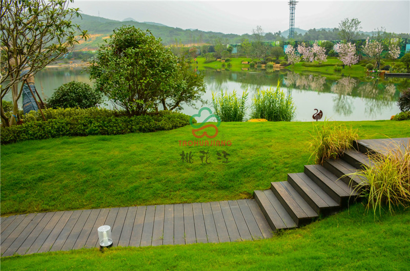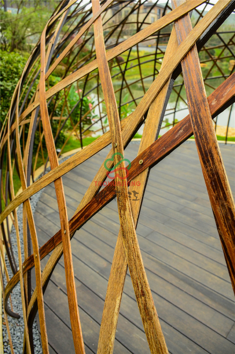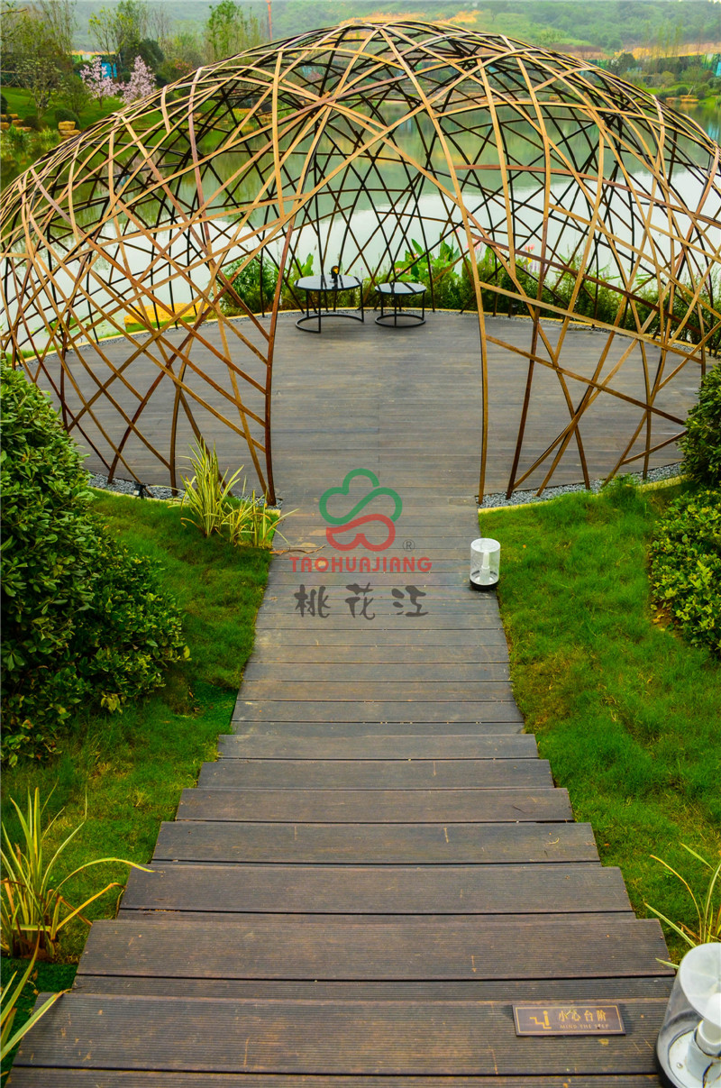 新城源山是南京新城在4A級(jí)景區(qū)-寶華山國(guó)家森林公園北門以東打造的山居純墅作品,項(xiàng)目?jī)?nèi)的綠化景觀道路鋪設(shè)了桃花江竹材科技的戶外高耐防腐竹地板,值一提的是景觀湖中間及周邊的球形設(shè)計(jì),材料均是由桃花江竹材科技的碳化竹片編制成而成,頗具時(shí)尚藝術(shù)氣息,寧可食無(wú)肉,不可居無(wú)竹,竹材的加入更加浸潤(rùn)著山水韻致與佛家禪意,仿若身處仙境,更寄托著現(xiàn)代都市人山湖情結(jié)的悠哉生活方式。