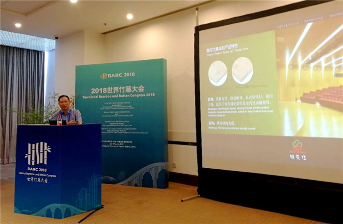 薛董以《竹建筑材料及其在城鎮(zhèn)化過程中的應(yīng)用潛力》為題,圍繞中國工業(yè)化以來企業(yè)運用現(xiàn)代工藝技術(shù)及設(shè)備研發(fā)新的竹材產(chǎn)品,闡述在我國城鎮(zhèn)化建設(shè)過程中竹材新產(chǎn)品在室內(nèi)外的運用以及未來的巨大潛力,結(jié)合豐富的案例展示了中國竹材產(chǎn)品的應(yīng)用成果及竹材應(yīng)用的發(fā)展趨勢。薛董的演講得到了來自世界各地的科研院所、高校、企業(yè)界的100多位代表的廣泛關(guān)注。